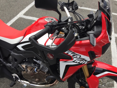 こちらの車両はDCTではなく普通のクラッチ付きですがUKのラインナップでは新型アフリカツイン用はブレーキ側のみのDCT用しかありません。なので、今回はクラッチレバーは純正のままブレーキレバーのみ交換していただきました。