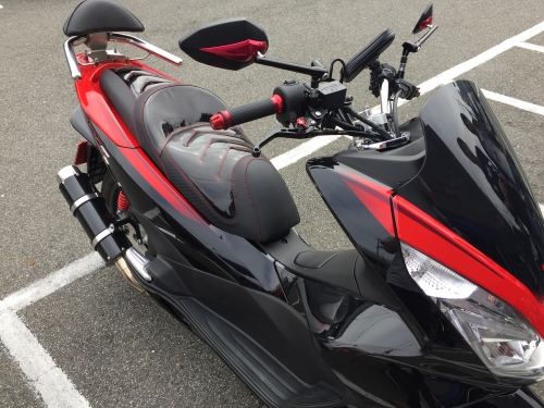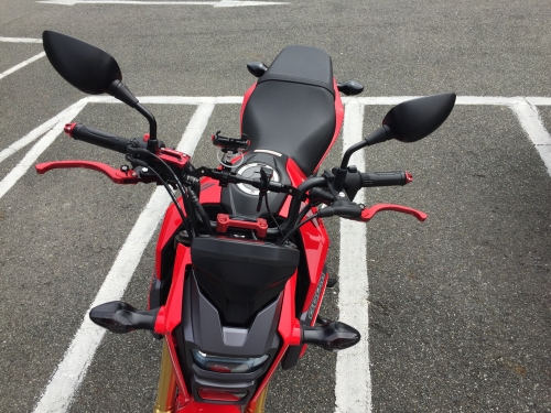 駐車場を見ているとUKレバーが付いているカスタムグロムがいたので画像を撮らせていただきました。レッドの車体にレッドのレバーが美しい!