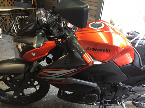 カワサキオレンジのZ250にはブラックのレバーにオレンジのアジャスターを装着です。車体に合わせてレバーにオレンジやグリーンが入ると一体感がハンパないです!