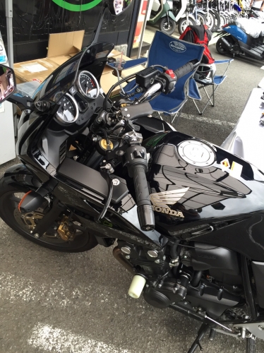 前日の降水確率が90%だったのでレバーを取り付けに来るライダーさんはいないだろうな~と思いきや、2人ほど猛者がいました。