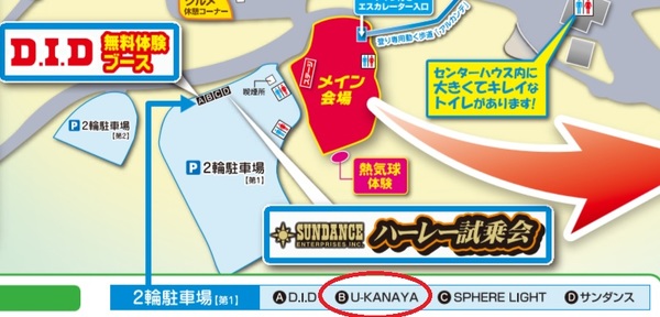 取付はこちらブースで行いますので、ご希望の場合はバイクをこちらまで乗ってきてください。