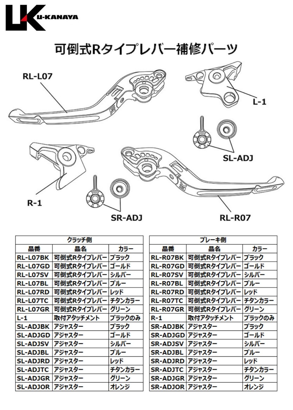 レバー7色×アジャスター8色、合計56種類のカラーバリエーションで愛車のカスタムコーディネートに一役買います。