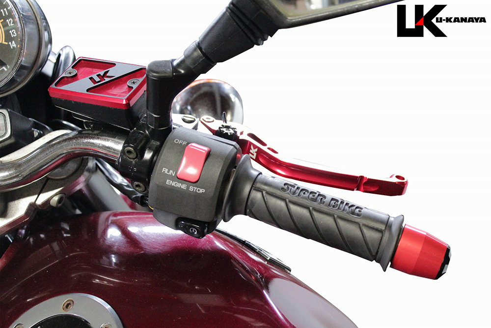 U-KANAYAの製品は元GPライダーの金谷秀夫氏と内商会のコラボレーションによる商品です。当社の管理の下で精密加工しております。U-KANAYAの全商品は、日本国内にて専門のスタッフが製品の組み立て及び検品を行っておりますので、安心してご使用いただけます。耐食性に優れた6061のアルミ材を精密なフルマシニング加工後、硬質アルマイト処理を施して高級感のある仕上がりになっています。