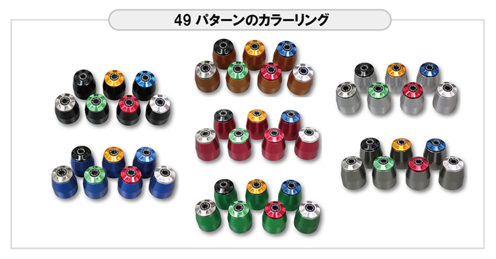 ●バーエンド本体7色×エンドキャップ7色、合計49種類のカラーバリエーションで愛車のカスタムコーディネートに一役買います。