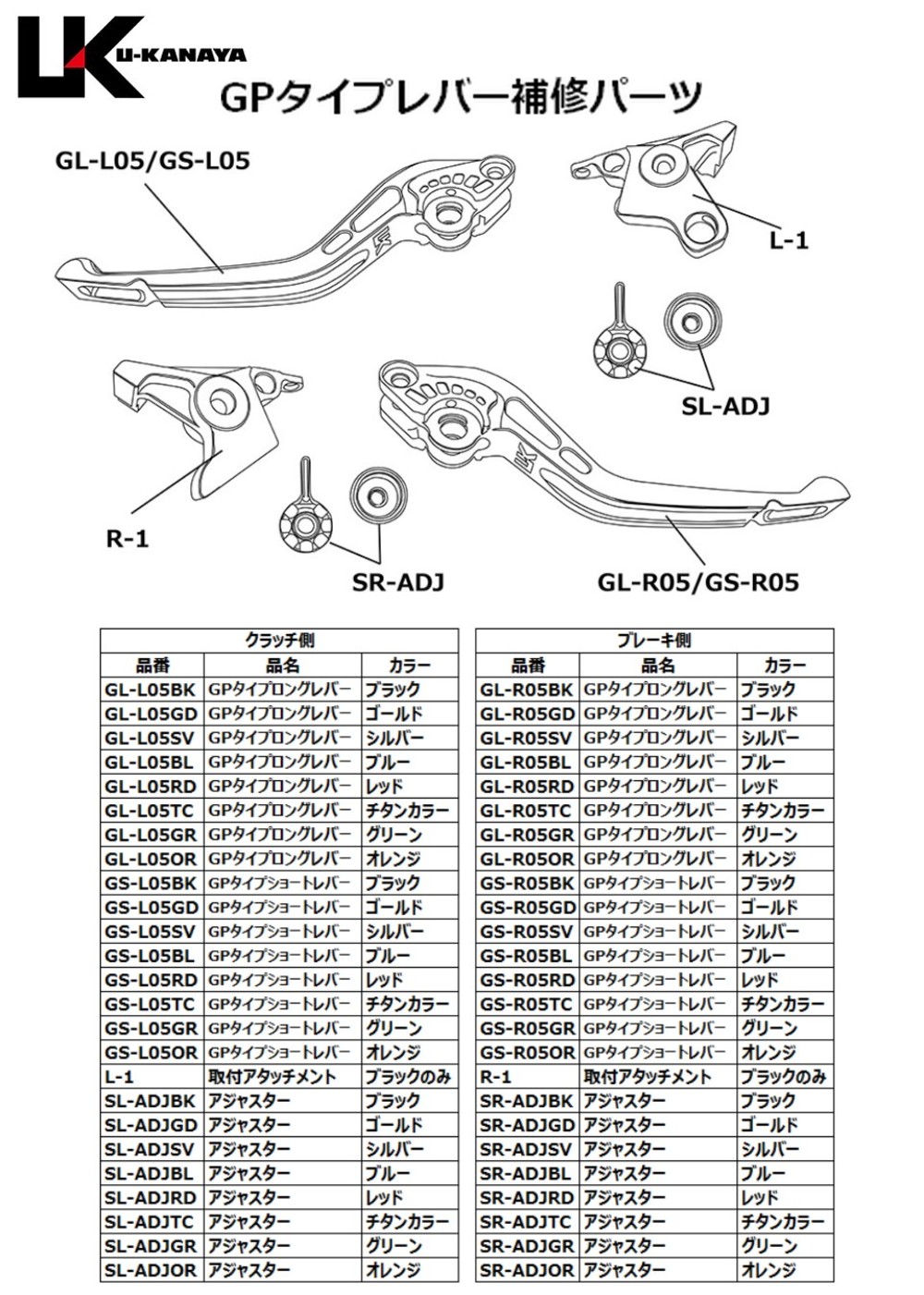 レバー8色×アジャスター8色、合計64種類のカラーバリエーションで愛車のカスタムコーディネートに一役買います。