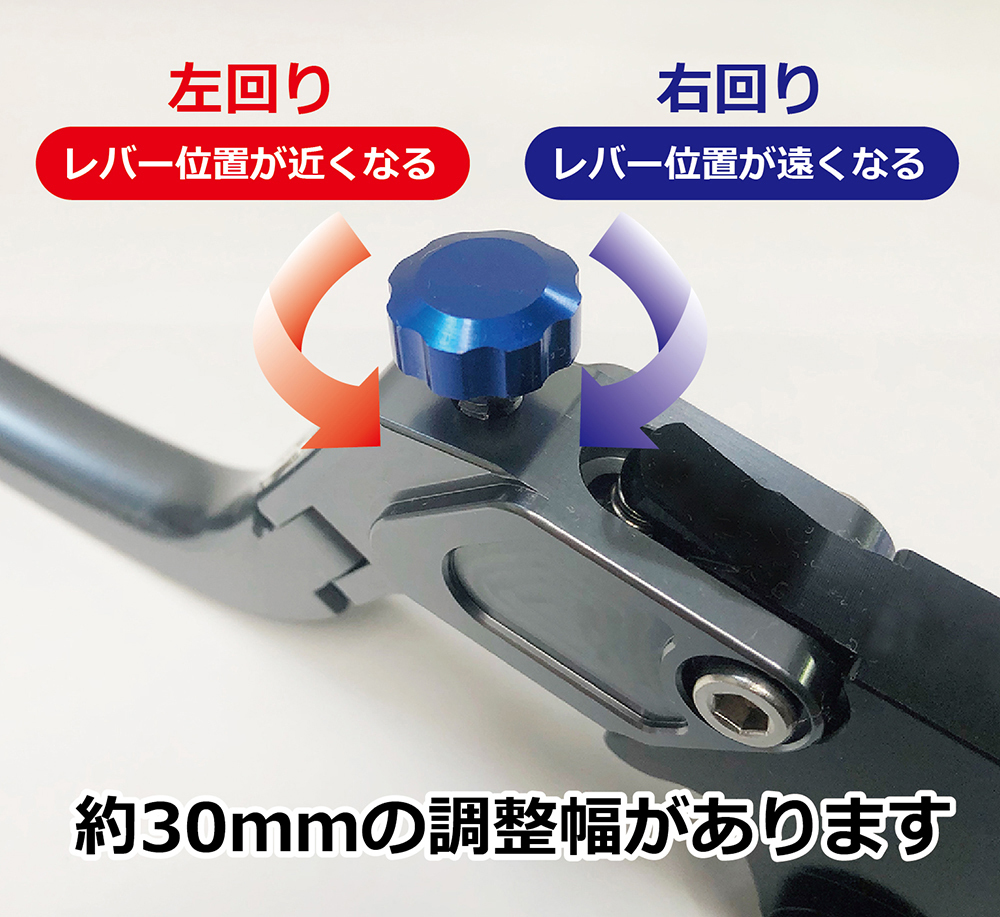 滑らかに動くアジャスターによりレバー位置を近くから遠くまで無段階で調整可能。
