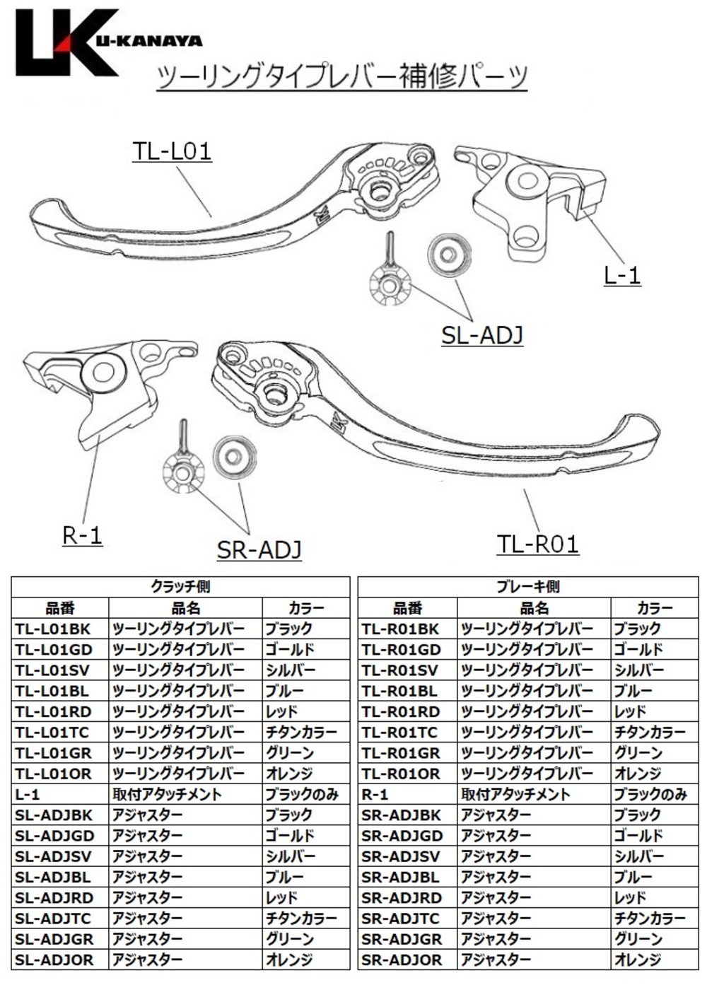 ※アジャスター(調整つまみ)はカラー:ブラック、ゴールド、シルバー、ブルー、レッド、チタンカラー、グリーン、オレンジの8色よりご選択いただけます。