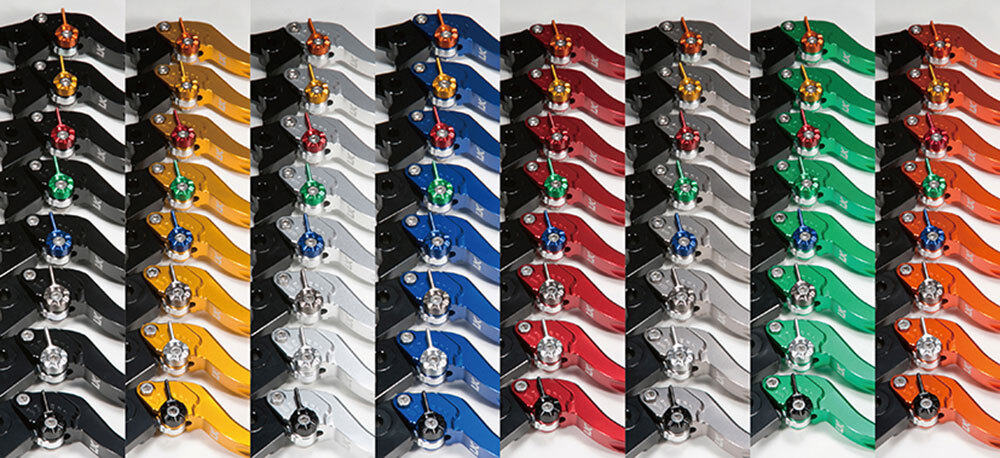 レバー8色×アジャスター8色、合計64種類のカラーバリエーションで愛車のカスタムコーディネートに一役買います。