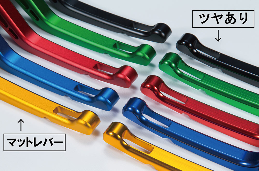 レバー5色×アジャスター8色、合計40種類のカラーバリエーションで愛車のカスタムコーディネートに一役買います。