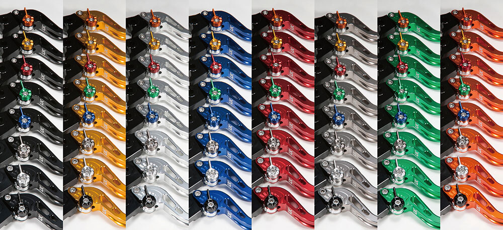レバー8色×アジャスター8色、合計64種類のカラーバリエーションで愛車のカスタムコーディネートに一役買います。