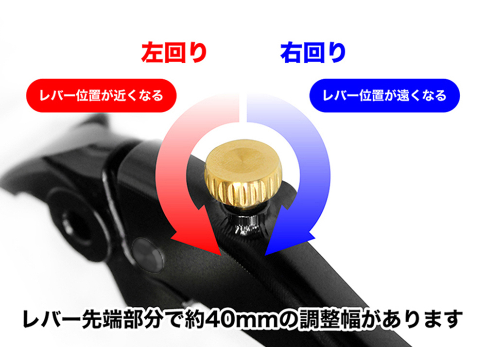※純正レバーよりレバー位置がかなり手前に来るため、グリップに近い位置でのご使用はクラッチの切れ不足や、ブレーキが掛かりにくいなどの制動不足を起こす場合がございます。ある程度操作が出来る間隔を保持してご使用してください。